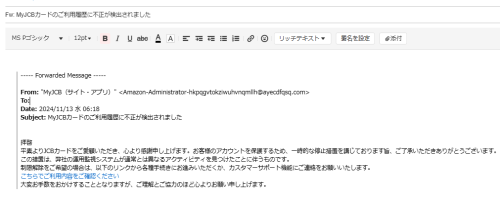 📧 「MyJCBカードのご利用履歴に不正が検出されました」って?!