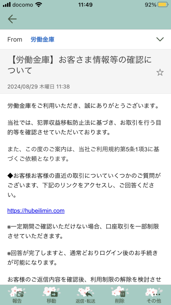 また来ましたね、「労働金庫 お客さま情報等の確認について」という件名のメール。一見もっともらしいけど、実はこれ、危険ななりすましメールなんです!今回は、このメールの怪しいポイントを徹底解説し、あなたを詐欺から守る方法を伝えます。